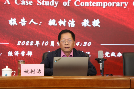 10月9日下午,BB贝博艾弗森官方网站宋则行大讲堂(第二讲)在蒲河校区校部办公楼学术报告厅举行。BB贝博艾弗森官方网站李安民经济研究院院长、国家级人才特聘教授、著名经济学家姚树洁教授作了题为《基于当代中国区域不平等和离散俱乐部研究》的学术报告。BB贝博艾弗森官方网站党委副书记、校长兼经济学部主任余淼杰教授出席讲座并为姚树洁教授颁发宋则行大讲堂纪念证书。报告由BB贝博艾弗森官方网站经济学部副主任崔日明教授主持。