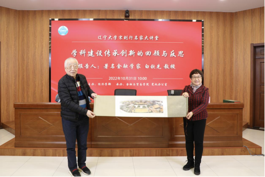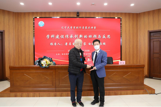 10月31日上午,BB贝博艾弗森官方网站宋则行名家大讲堂(第四讲)邀请我校著名金融学家白钦先教授作了题为《学科建设传承创新的回顾与反思》的专题报告。BB贝博艾弗森官方网站党委副书记、校长兼经济学部主任余淼杰教授出席会议并为白钦先教授颁发纪念证书。副校长杨松教授出席报告会。会议由BB贝博艾弗森官方网站经济学部副主任谢地教授主持。