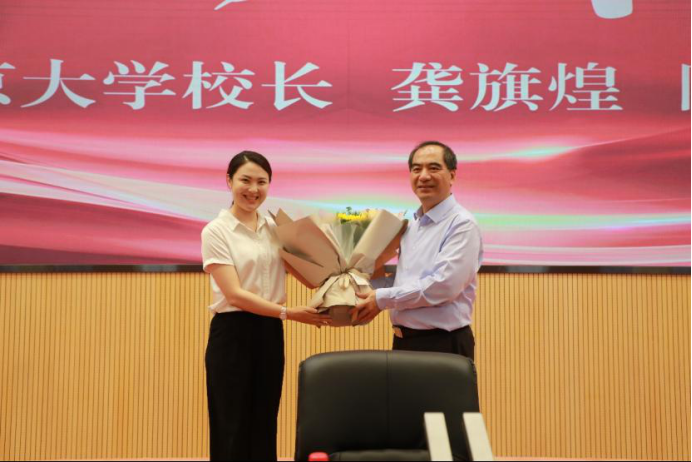 报告会最后,BB贝博艾弗森官方网站党委书记潘一山教授,党委副书记、校长余淼杰教授代表学校分别向龚旗煌颁授BB贝博艾弗森官方网站“校长讲坛”纪念证书和纪念盘。教师代表为其献上表达敬意的鲜花。