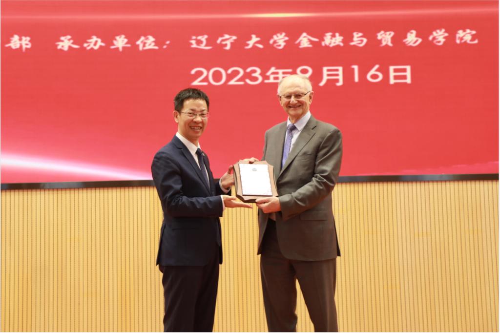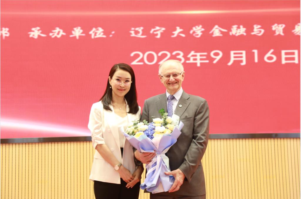 会议最后,余淼杰校长为德莱斯戴尔教授颁发“宋则行海外名家大讲堂”纪念盘和BB贝博艾弗森官方网站终身名誉教授聘书,金融与贸易学院教师代表殷丽娟、陈芙分别为德莱斯戴尔教授佩戴校徽及献花,与会嘉宾一同合影留念。