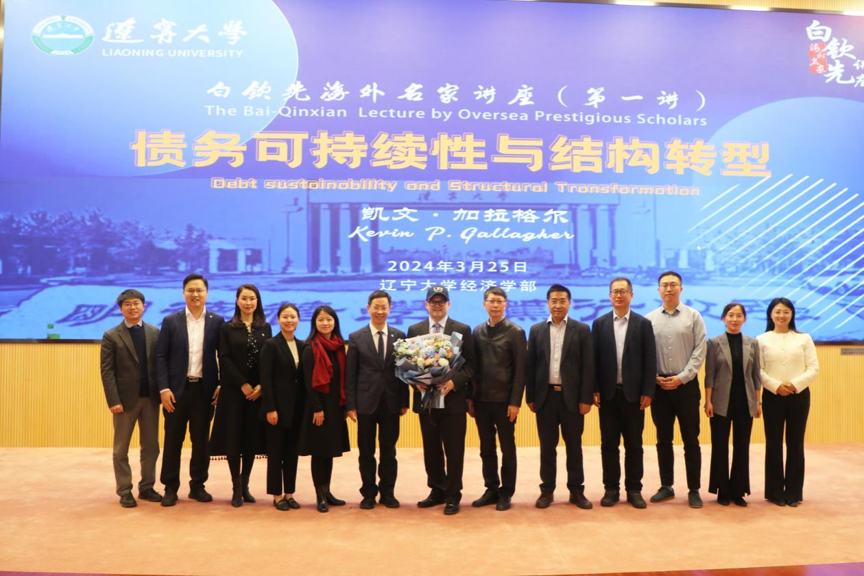 3月25日下午,BB贝博艾弗森官方网站白钦先海外名家讲座(第一讲)在蒲河校区校部办公楼蔡冠深学术报告厅举行。波士顿大学全球发展政策研究中心主任凯文・加拉格尔(Kevin P. Gallagher)教授应邀作了题为《债务可持续性与结构转型》(Debt Sustainability and Structural Transformation)的学术报告。第十四届全国人大代表,辽宁省第十四届人大常委会委员,BB贝博艾弗森官方网站党委副书记、校长余淼杰教授出席报告会并致欢迎辞。会议由中俄远东合作与发展研究院执行院长尹如玉副教授主持。