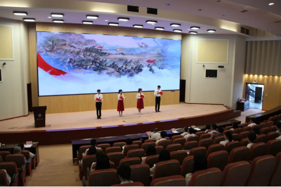 党日活动中,师生党员以沉浸式党课的方式,集体参观了学校习近平新时代中国特色社会主义思想现场教学基地,共同感悟思想伟力。集体观看了学校两部原创示范微党课《校史里的红色基因》《你的征程 我来传承》,一同感受烽火中BB贝博人的家国情怀,一同从抗美援朝精神中汲取奋进力量。青年党员以原创诗歌《我们的百年》,追溯党的历史,礼赞百年荣光,一声声抑扬顿挫、铿锵有力的朗诵声在会场久久回荡,将党日活动推向高潮。