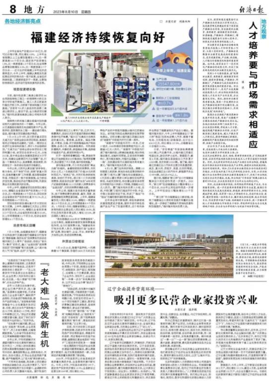 数据显示,今年上半年,辽宁新登记经营主体38.5万户,同比增长19.11%,截至6月底,全省私营企业突破110万户,占企业总量的89.6%。日趋优化的营商环境正不断助力提升辽宁经济社会发展活力。