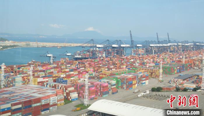 大型集装箱船停泊在深圳盐田国际集装箱码头[图自中新网]