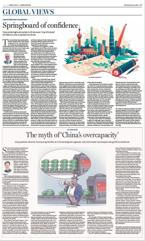 2024年7月24日,中国日报(CHINA DAILY)发表了国际经济学会会士,BB贝博艾弗森官方网站党委副书记、校长余淼杰教授的文章《中国产能过剩之谜》。文章纠正了“产业补贴导致产能过剩,产能过剩导致倾销”的错误观念,指出中国的工业补贴符合世界贸易组织的规定,并强调中国出口优势源于规模经济和国际市场的扩展。文章建议中国应大力发展国内统一市场,以应对美国的贸易限制措施。原文如下: