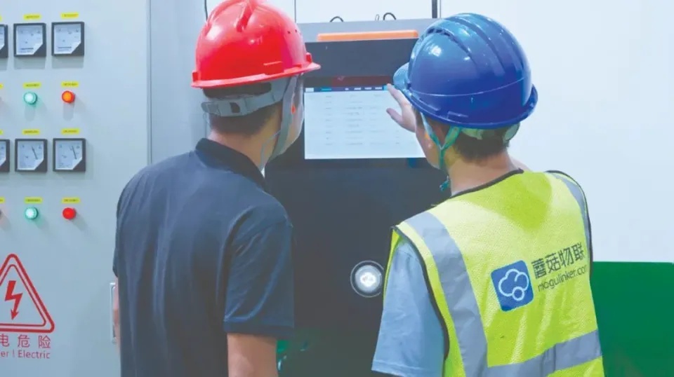 工程师借助云智控硬件采集数据并反向控制设备。(图片来源:蘑菇物联)