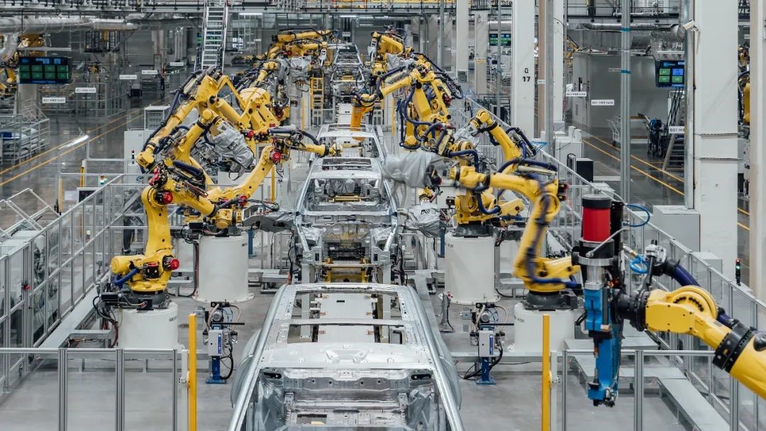 重庆市两江新区一家汽车工厂的焊装车间生产线。图源:新华社