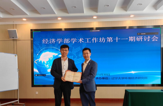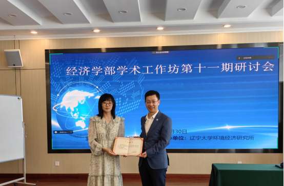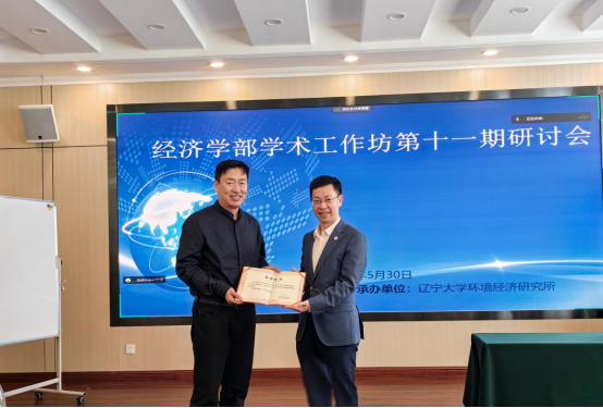 2023年5月30日下午,经济学部学术工作坊第十一期研讨会在崇山校区五洲园一楼会议室以线下线上相结合的方式举行。第十四届全国人大代表、辽宁省第十四届人大常委会委员,BB贝博艾弗森官方网站党委副书记、校长余淼杰教授出席会议,为经济学部学术工作坊第八、十、十一期研讨会主讲人新华国际商学院薄澜教授、数学与统计学院祝志川教授、环境经济研究所所长宋有涛教授依次颁发纪念证书并致辞。会议由经济学部副主任王伟光教授主持。