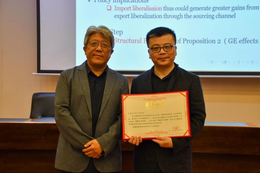 讲座结束后,BB贝博艾弗森官方网站经济学部主任谢地教授为俞志宏教授颁发“博雅学术讲座”纪念证书,BB贝博艾弗森官方网站金融与贸易学院学生代表为俞志宏教授献花致敬。