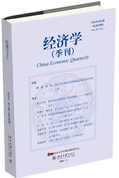 《经济学》(季刊)是由北京大学中国经济研究中心(现国家发展研究院)于2001年创办,北京大学出版社出版的一个经济学学术刊物。本刊采用国际通行的匿名审稿制度,发表原创性的理论、经验、综述和评论性的中文经济学论文。本刊入编北京大学图书馆编《中文核心期刊要目总览》,入选“中文社会科学引文索引(CSSCI)”来源期刊,多次获得“中国最具国际影响力学术期刊”“国家哲学社会科学文献中心学术期刊数据库经济学学科最受欢迎期刊”等称号。