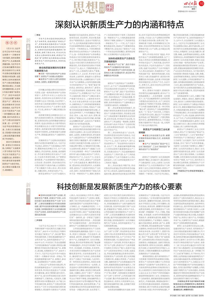 2024年2月19日,经济学院李政教授在《四川日报》发表理论文章《深刻认识新质生产力的内涵和特点》并被新华网转载。