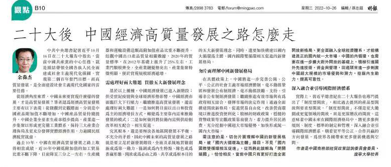 近日,香港中通社采访BB贝博艾弗森官方网站党委副书记、校长余淼杰教授,《香港明报》对采访进行报道,现将原文及图片转载如下: