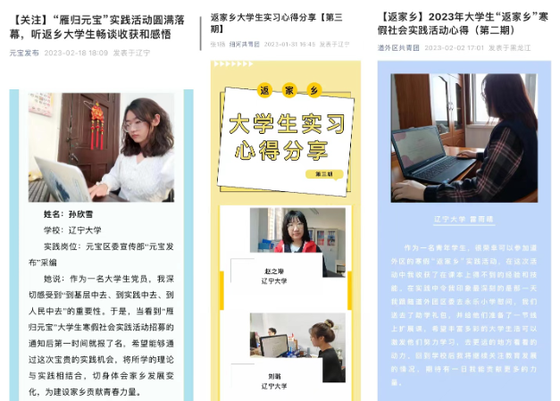 返家乡志愿者们参与政务实践,足迹遍布13个省份49个城市,投身振兴发展一线,为家乡助力,以青春赋能。他们投身于68个街道、近100个社区、134个社区服务实践岗位,展开调研,撰写调研报告300余份,为家乡发展建言献策。
