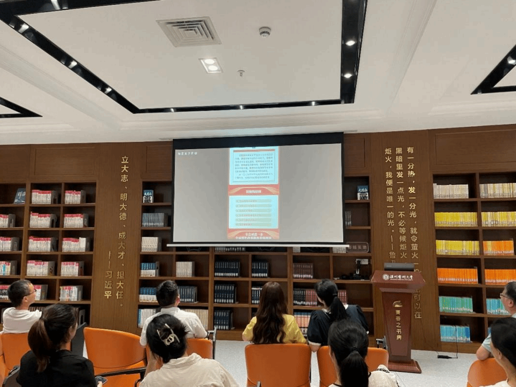 与会人员集中观看了余淼杰对党的二十届三中全会以《把舵引航 明确中国式现代化路线图、时间表》为题所做的解读,并重点对新质生产力、高质量发展、高水平安全三者间内在逻辑进行了深入浅出的阐述。