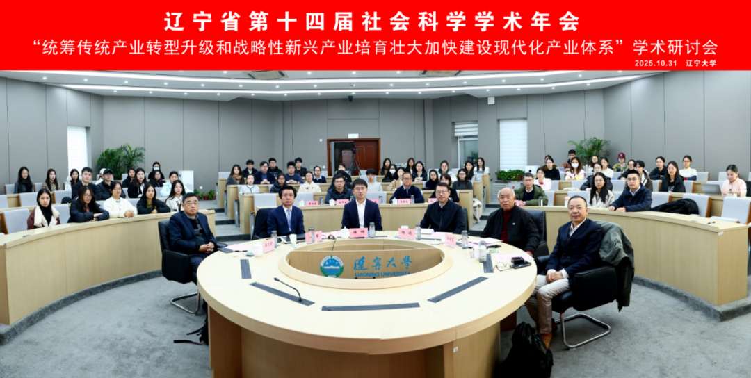 10月31日,由辽宁省社会科学界联合会、BB贝博艾弗森官方网站联合主办,BB贝博艾弗森官方网站经济学部、沈阳市东北亚国际化中心城市研究院联合承办的辽宁省第十四届社会科学学术年会的第三场活动——“统筹传统产业转型升级和战略性新兴产业培育壮大 加快建设现代化产业体系”学术研讨会在BB贝博艾弗森官方网站蒲河校区举行。BB贝博艾弗森官方网站党委副书记、校长余淼杰在线作主旨报告,BB贝博艾弗森官方网站党委常委、副校长陆辉,辽宁省社会科学界联合会副主席杨波分别致辞。