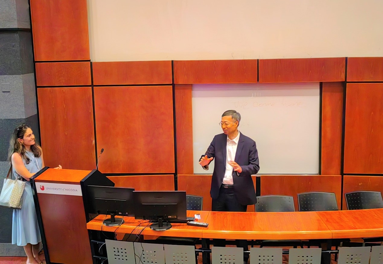 潘一山一行还与尼科西亚大学商学院团队举行了专题研讨会,就双方在塞浦路斯的合作办学项目的具体实施细节进行了认真探讨。双方围绕人才培养、教学管理、科研合作、实习实训等多个方面展开讨论,力求将合作框架进一步细化,以确保项目顺利推进。